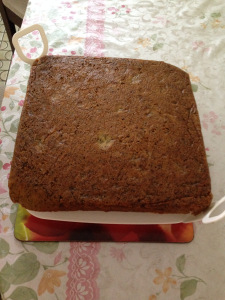 Let it stand in oven for 10 mins with door ajar and let it cool a little in its tin outside for a further 30 mins. Cut the cake up into squares. Option have with orange sauce, ice cream or on its own.