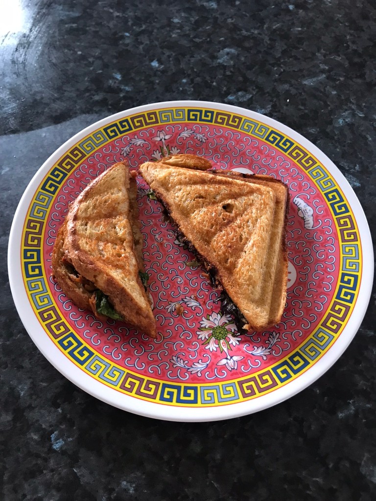 You can add any ingredients to your toasted sandwich. Today, I am adding sweet chili and mango tuna and some spinach & rocket leaves. It’s spicy to my taste bud, comforting, satisfying and delicious. Let’s cook!!!