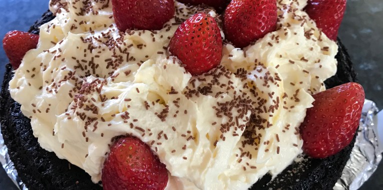 Here’s my experiment that was successful: Aperol Guinness chocolate mint with cream cheese and strawberries cake to bring it alive with strawberries for color and chocolate sprinkles as extra decoration rather than a dull Guinness cake look.
