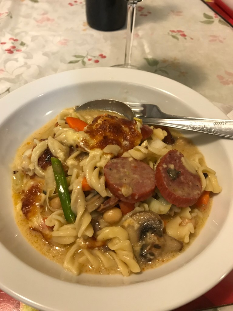 One thought on “Baked chorizo, pepperoni and vegetables spiral pasta