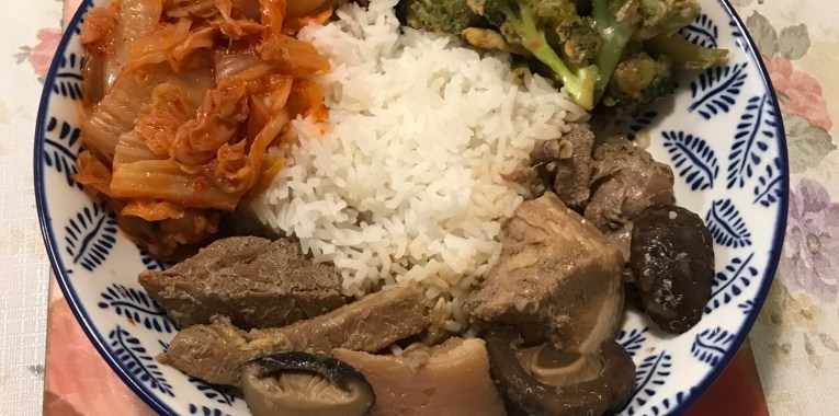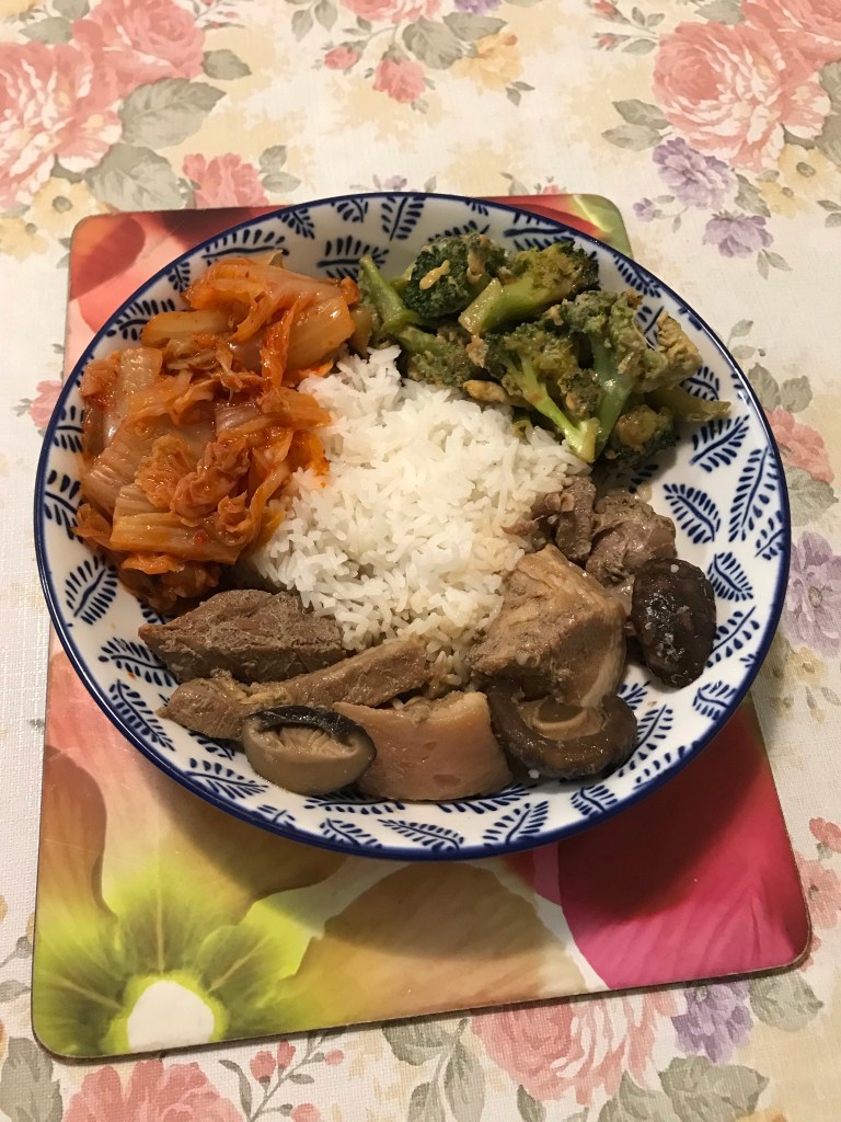I am happy that my tau yu bak turned out comforting and delicious along with leftovers broccoli egg recipe below and kim chi with rice. Let’s cook!!!
