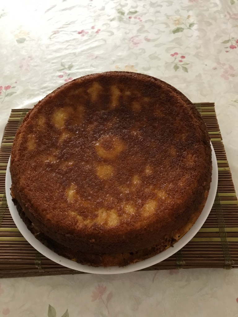 Bake for 1 hour and 15 minutes until a skewer inserted comes out clean. Leave in oven with door close and switch off oven for 30 minutes. Then cool further in the pan for 10 mins before turning over to a plate. Serve with green tea or lemon tea. Enjoy!!!!