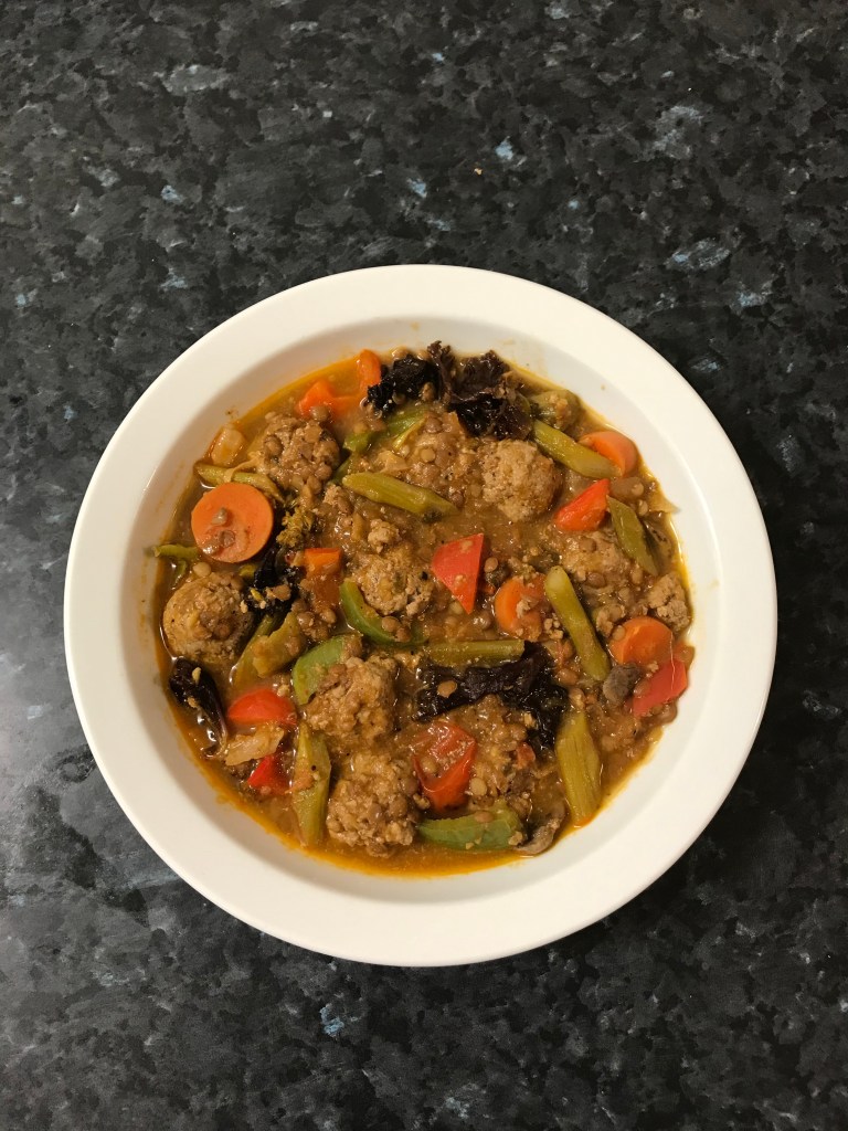 I have some leftovers vegetables and uncooked can lentil in the fridge. Then there’s some leftovers uncooked beef minced in freezer. As it’s a cold day. I thought this will keep me warm.