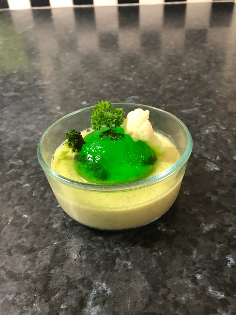 One thought on “Basil broccoli and cauliflower creamy panna cotta with basil jelly broccoli and cauliflower”