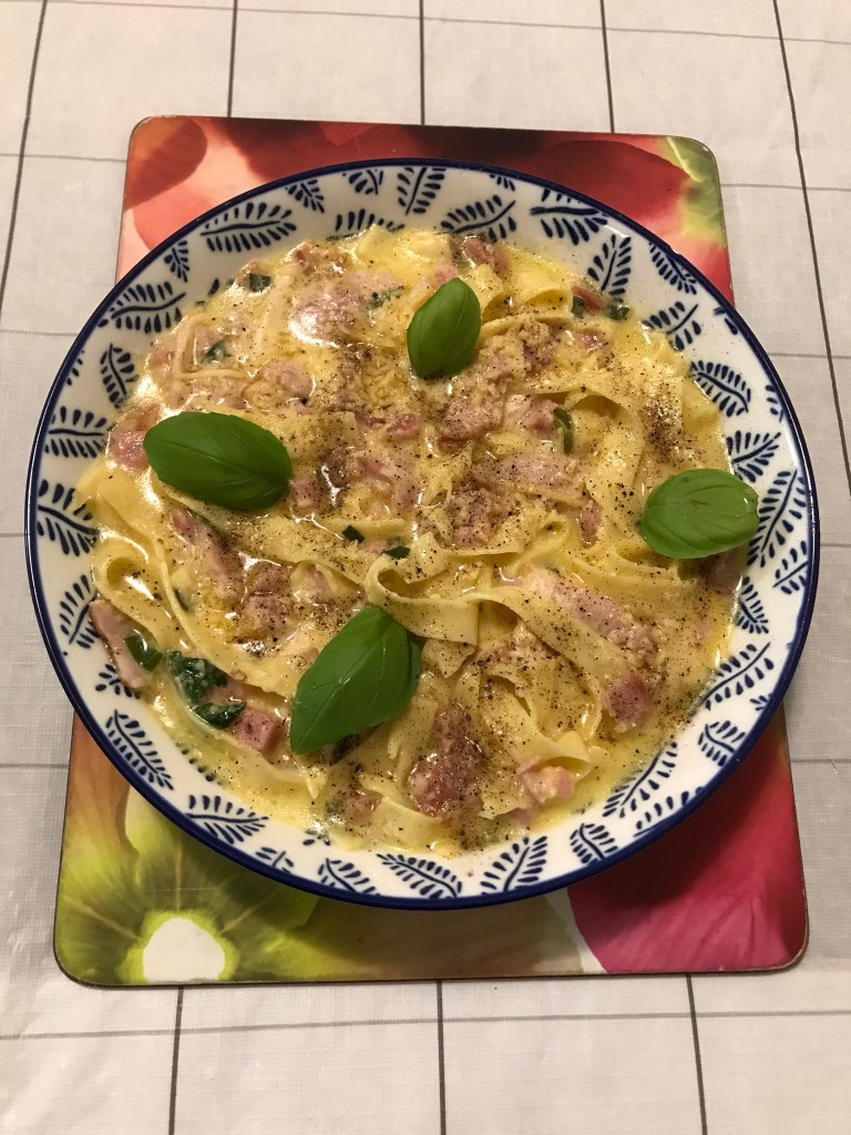 https://helenscchin.com/2020/07/26/pappardelle-bacon-pancetta-in-butter-sauce-with-basil/