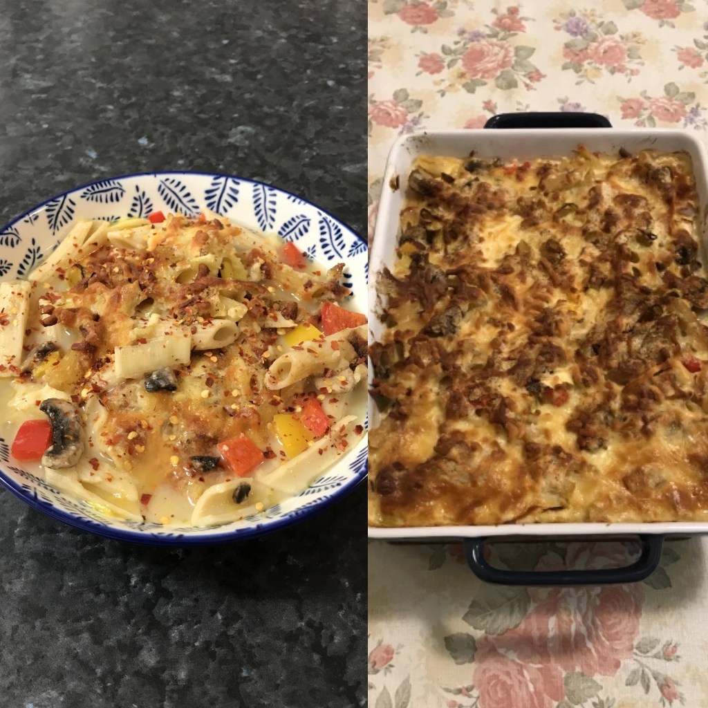 For Autumn colour on food, I have selected some bright colour vegetables that’s comforting and hearty. This adds a bright combo to my baked rigatoni. However, I wanted to be creative and explore my culinary skill to bring it to the next level. I have borrowed a method from food blogger, in her vegetarian mushrooms soup-magiritsa: yellowish frothy sauce. Her original recipe is at the bottom.