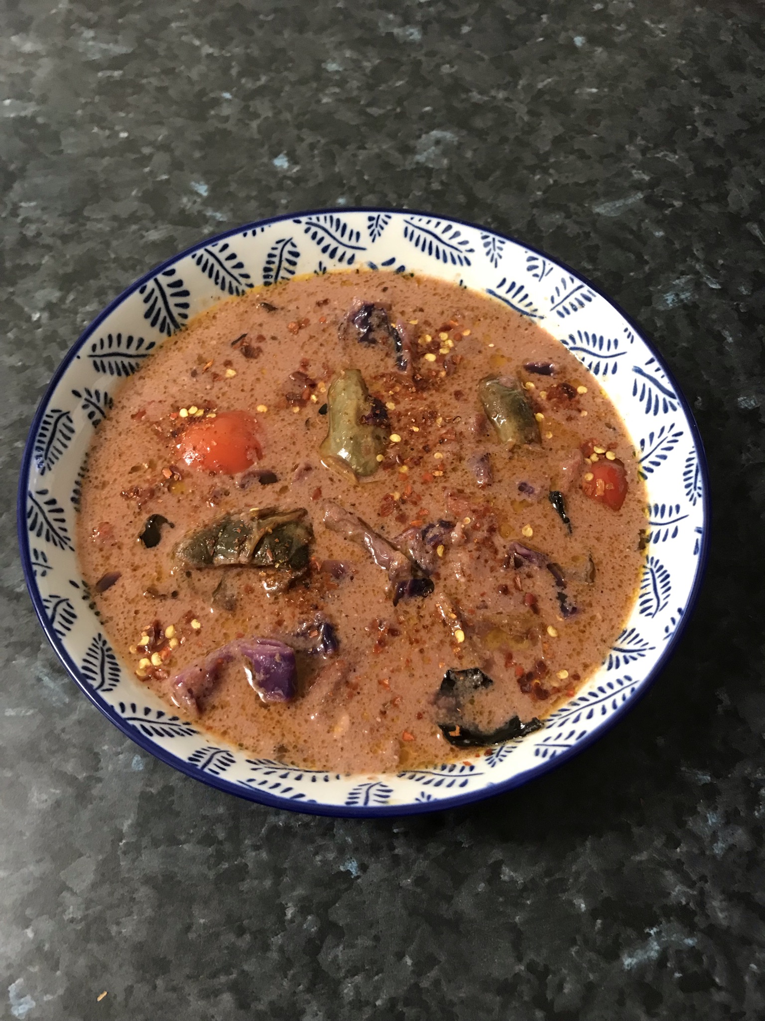 Gently stir in yoghurt and simmer for about 5 minutes. Remove half the soup, put into blender and blend to the consistency you want. Pour back into the remaining soup, add mascarpone and check the seasoning. Spoon onto bowls and sprinkle chili flakes. Enjoy!!!