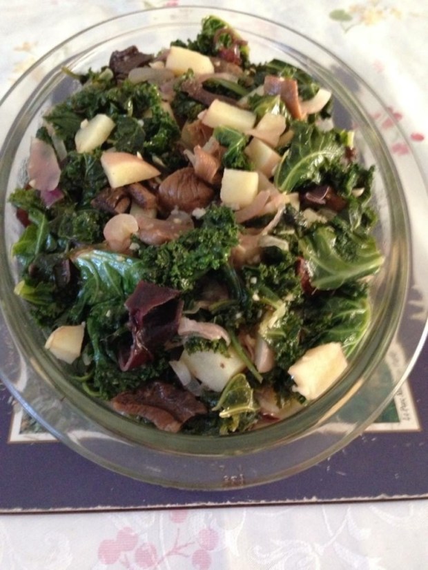 One thought on “Kale spinach potatoes mixed mushrooms in white wine sauce”