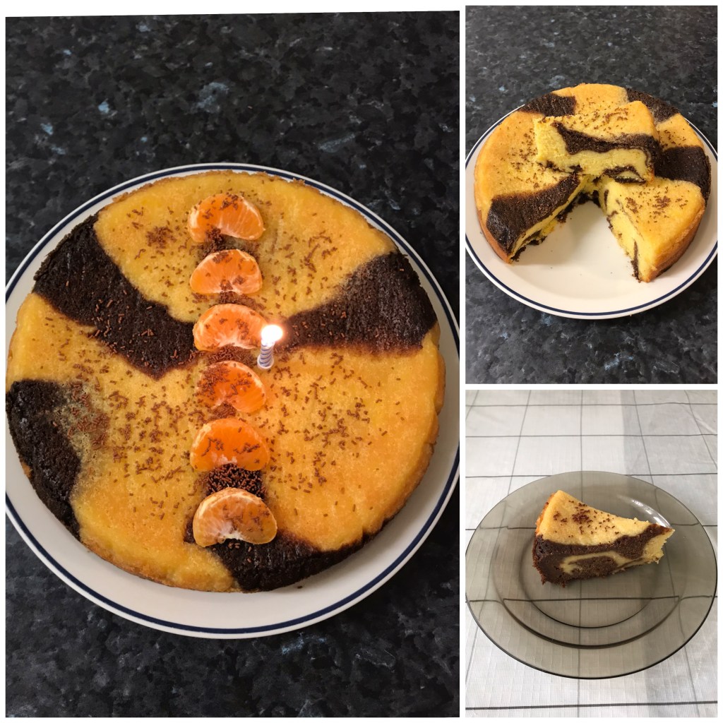 Anyway, I forgot to do marbling on the bottom: the first layer but second and following layers I did make marbling. I am glad that the cake turned out well. The colour of the orange looks a bit like the recipe she gave me and my coco colour are a bit darker. Bake this cake for my mother birthday, everyone said it was moist, creative, not too sweet and delicious. Let’s bake!!!