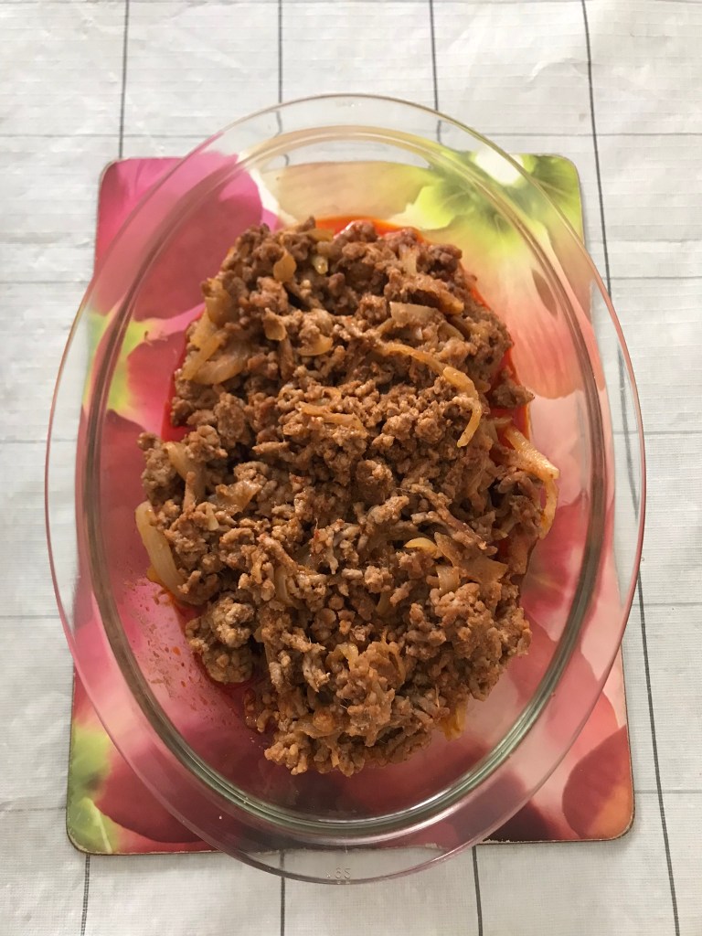 It has been pouring heavily almost every day. Just didn’t want to get out to get food and I have some minced pork, onion and a bottle of sambal olek sauce in my pantry.