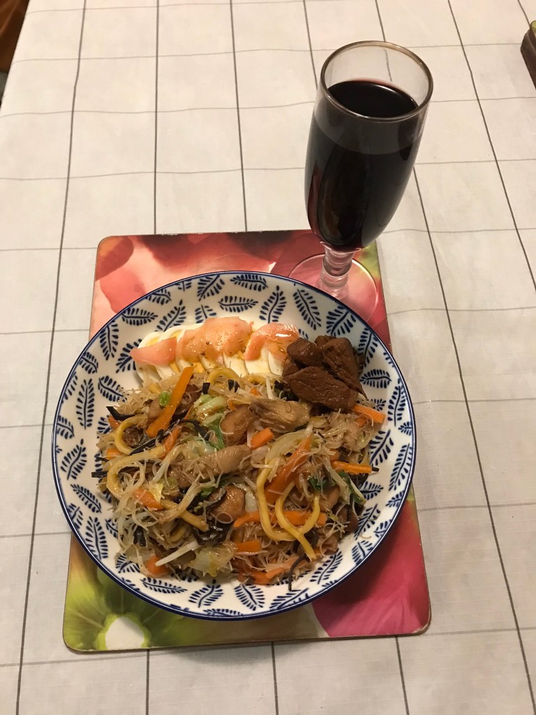Serve with fried egg vermicelli and vegetables, along hard boiled egg and ginger pickled. Enjoy with a glass of red wine!!!