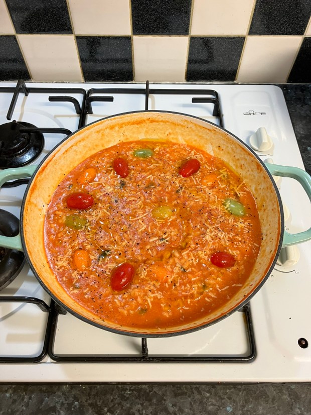 Different ingredients Tomato risotto: https://helenscchin.com/2021/02/09/tomato-risotto/