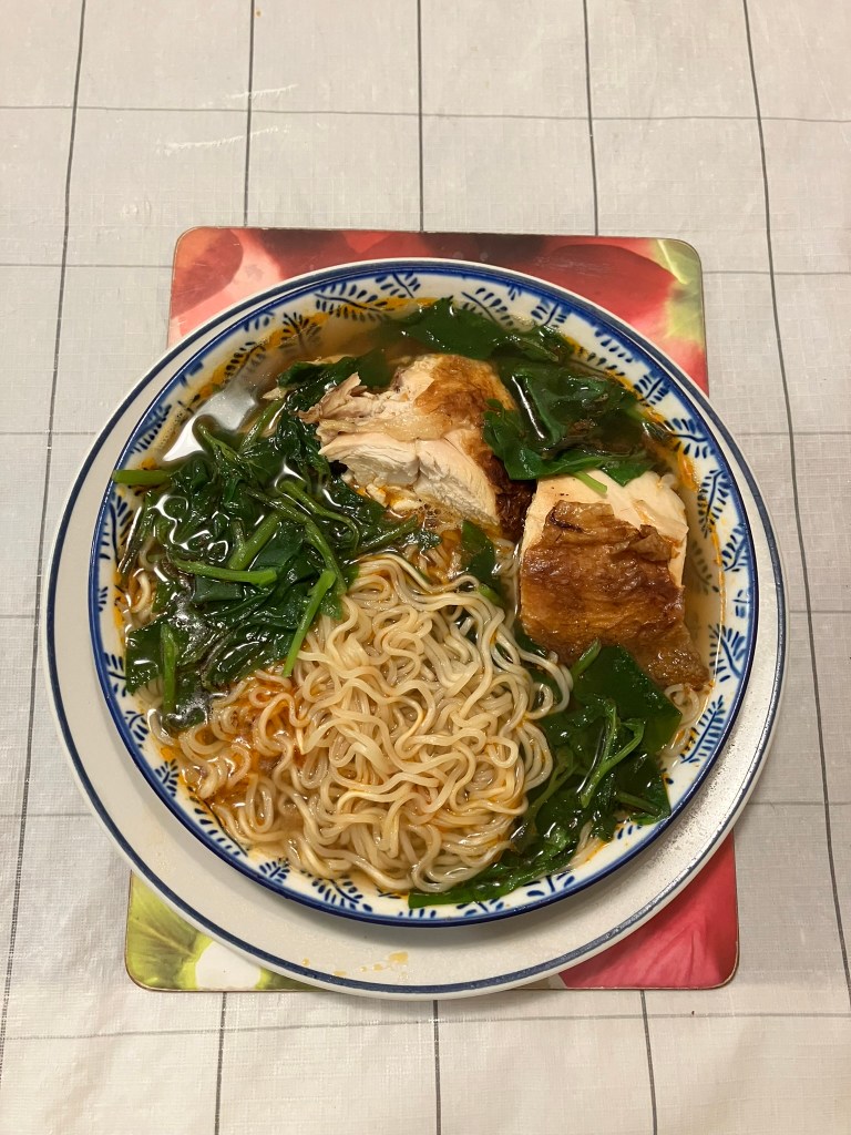 My friend gave me a packet of har mee soup packet to try. Another friend gave me botany bay spinach. I have leftover bought roasted chicken. Here’s my lunch from God. He brings food through friends. Thank you, God and my two friends. Har is prawns in Hokkien; a Chinese dialet.