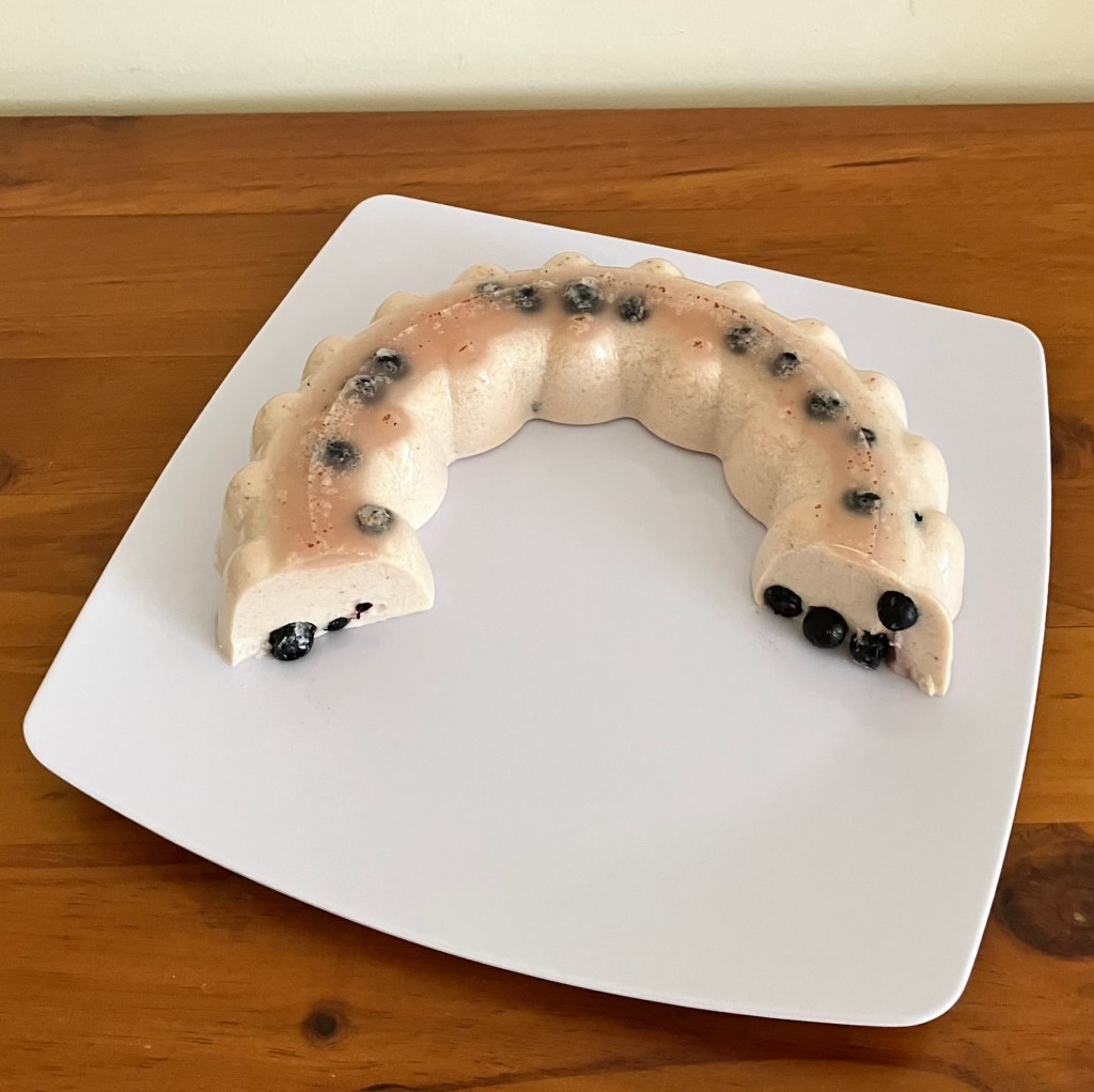 From my memory and from my experimenting in making panna cotta. I am glad it turns out well. It set to the desired setting, it has a clear ring on top, could be the puree that I had added in as well as blueberries on the clear ring and inside the milk and thickened cream. The colour is off white pink, its looks beautiful and delicious. Let’s make it for Chinese New Year or Valentines Day!!!