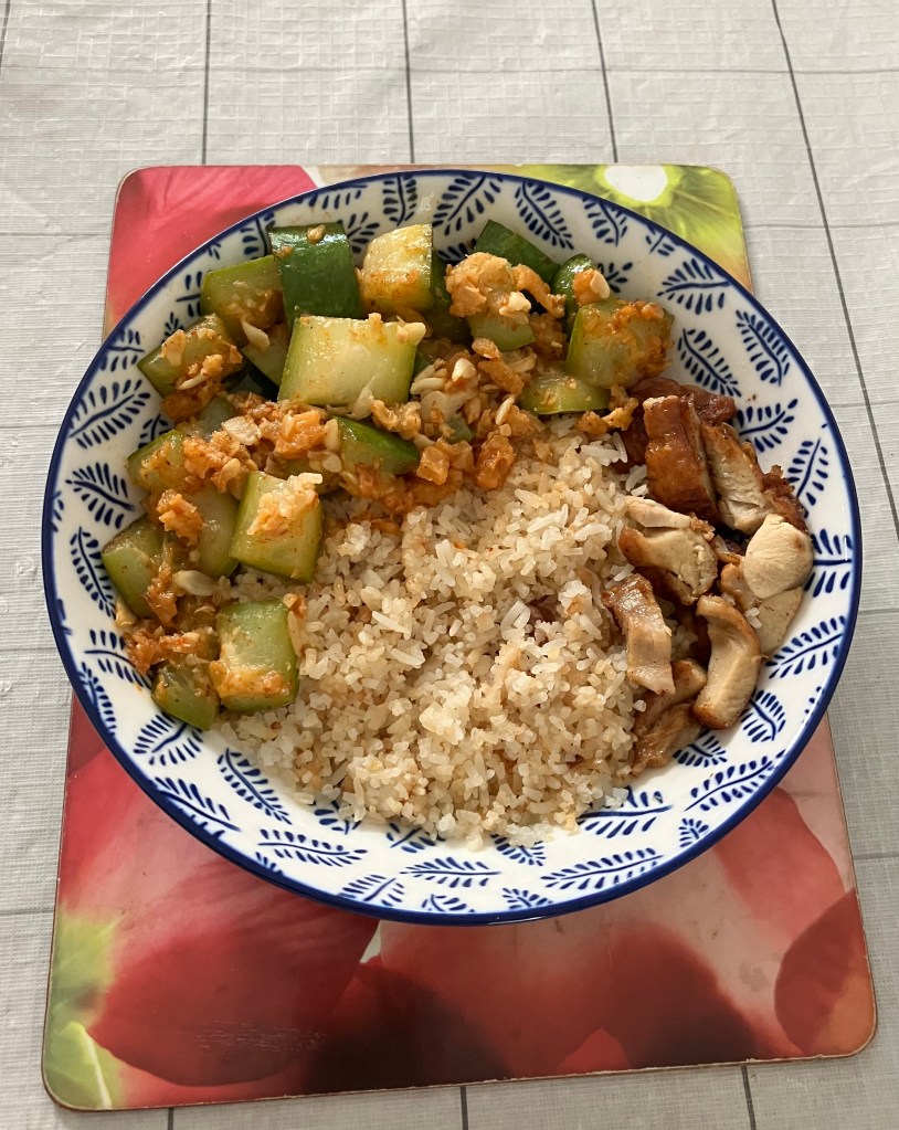 I crave for hairy gourd tom yum as well as flavoured chicken rice. I am glad to use rice cooker instead of claypot. My bowl has a swirl of flavour: spicy, delicious, and satisfying my soul. Let’s cook!!!