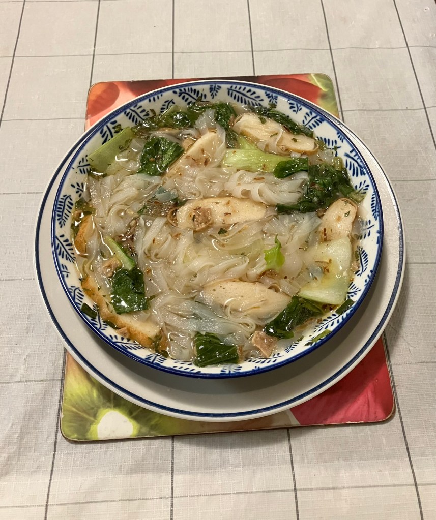 https://helenscchin.com/2024/04/28/koay-teow-noodle-soup-with-fish-cake-and-bok-choy/