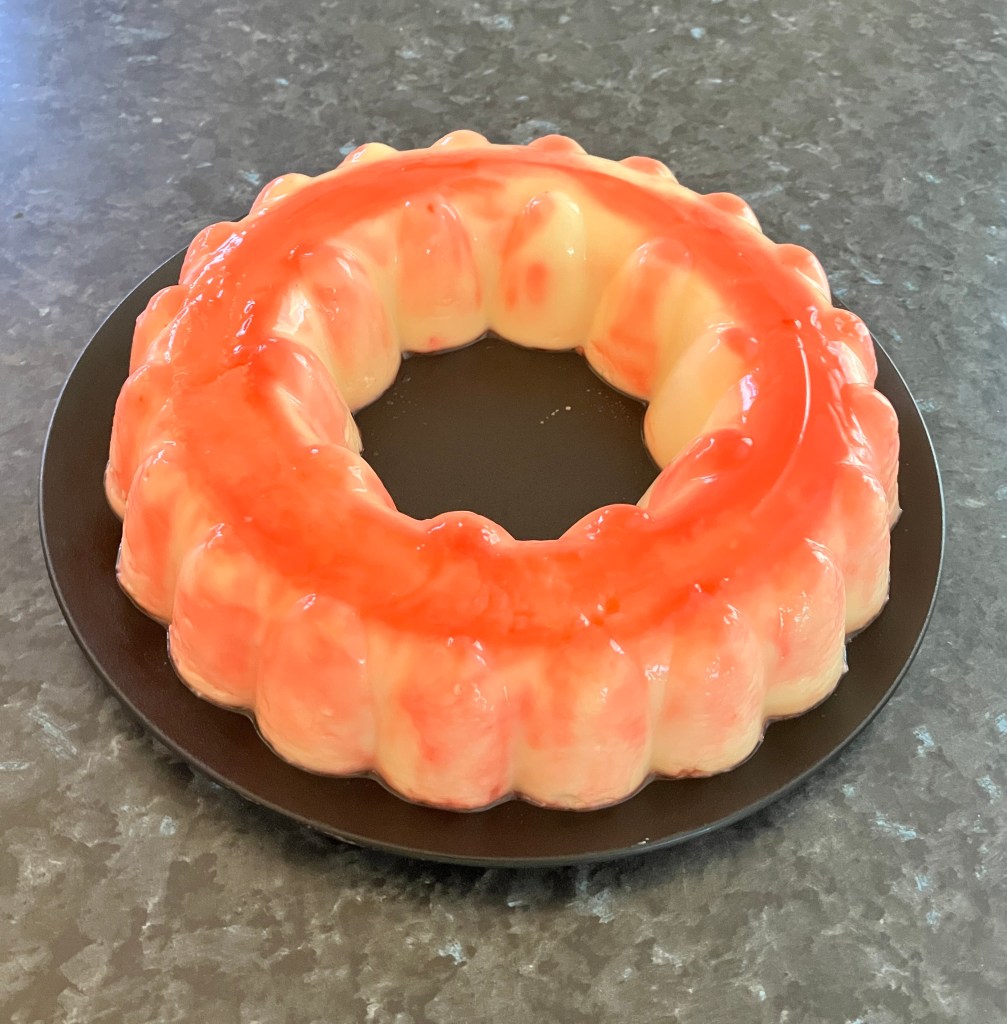 Google: “Panna cotta is an Italian dessert that translates to “cooked cream” that contains just 4 ingredients: cream, sugar, gelatine and vanilla. To make panna cotta, you heat full fat heavy cream with sugar, vanilla and then add bloomed gelatine. Then pour the mixture into moulds or serving cups. The texture of panna cotta should be wobbly and jiggly, some say like a woman’s breast. You don’t want your panna cotta to set like a firm jelly but you want to ensure that it is set enough.”
