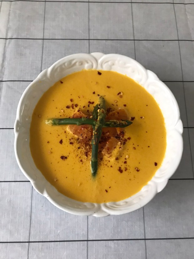 https://helenscchin.com/2021/12/26/pumpkin-soup-with-pumpkin-and-asparagus/
