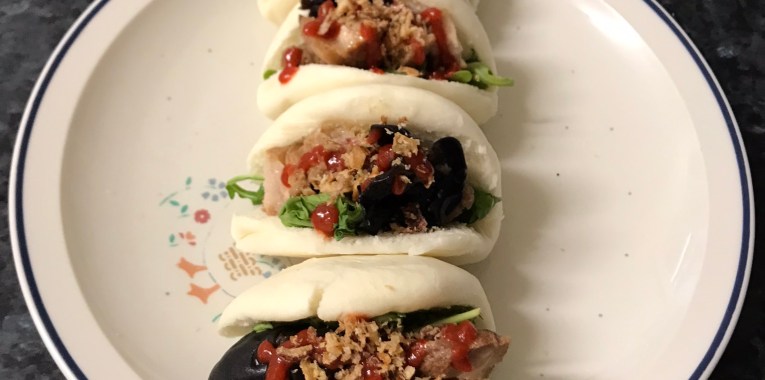Google: “Bao Buns (pronounced “bow”), but also known as a ‘steamed buns’ or ‘baozi’ 包子, are a delicious, warm, fluffy treat of stuffing wrapped inside a sweet, white dough. Made with a mix of flour, yeast, sugar, baking powder, milk and oil, the bao is a tad sweeter than its closely related cousin, the dumpling. The taste of Chinese bao buns depends on the filling inside them. Most fillings are savory and mildly sweet. There are so many different ways to make bao buns that the bao taste is rarely ever consistent. You can add mushrooms, pork, chicken, beef, and even chocolate for a sweet kick!”