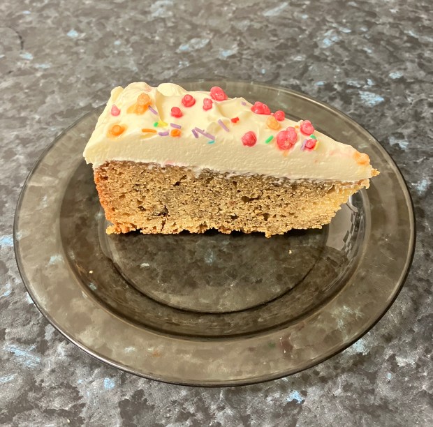 Now add in milk, beating again until increase in volume about 5 minutes to make it spreadable consistency. I place it in the fridge for 20-30 minutes. You don’t have too. (See Note). Just before serving about 10 minutes, spoon a big dollop of the frosting onto the centre of the cool cake. The spread out and all around the top of cake. To garnish, Sprinkles raspberry flavoured candy toppers with my leftover salted caramel toppers and colourful sprinkles. Place a candle in the middle as it is a birthday cake.