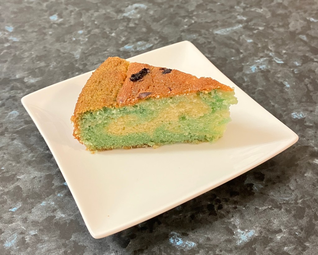 A friend gave me some leftovers blue pea flowers and the cake recipe. I searched the recipes for blue pea flowers; there are a handful on desserts: Asian desserts with glutinous rice and drinks. I changed the ingredients to call my own. I baked this cake for another friend’s birthday; we celebrated early at a Malaysian restaurant. Another friend brought plastic plates and spoons, as nowadays restaurants surcharge for extra plates and spoons.