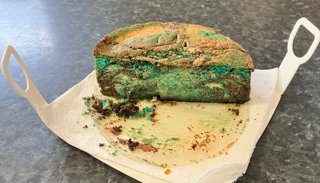 Test again after 25 more minutes time up. I prick 5 different places to make sure it’s cooked. Switched off oven, leaving cake in oven for 35 minutes with door closed.