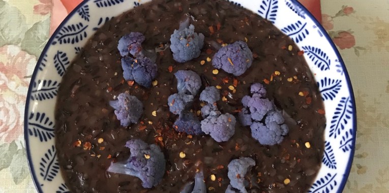 https://helenscchin.com/2021/07/27/purple-cauliflower-black-rice-risotto/