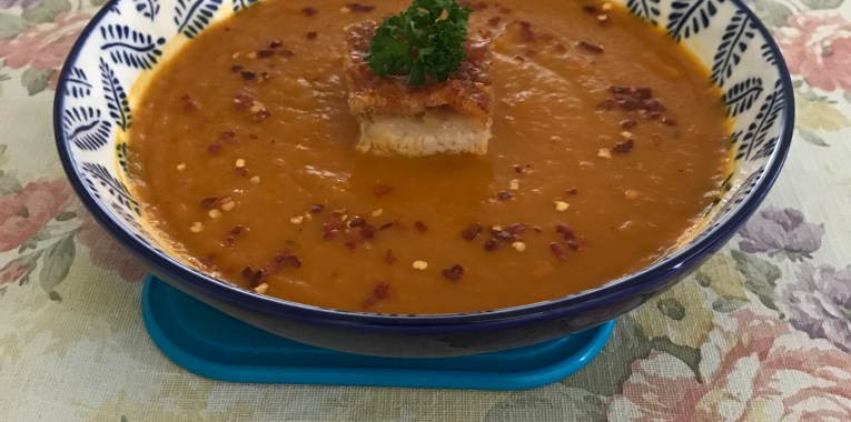 Adding roast pork instead of croutons, bread or nuts gives additional robust flavour to the soup. This is a modern invention soup worth trying during lockdown. Be creative and let’s cook!!!!