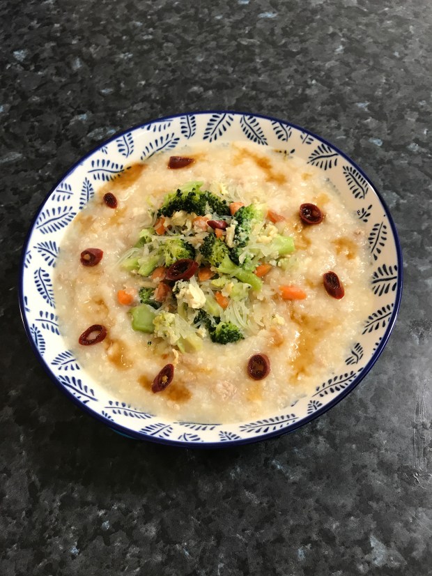 My first Fish and minced pork congee (porridge): https://helenscchin.com/2020/10/03/fish-and-minced-pork-congee-porridge/