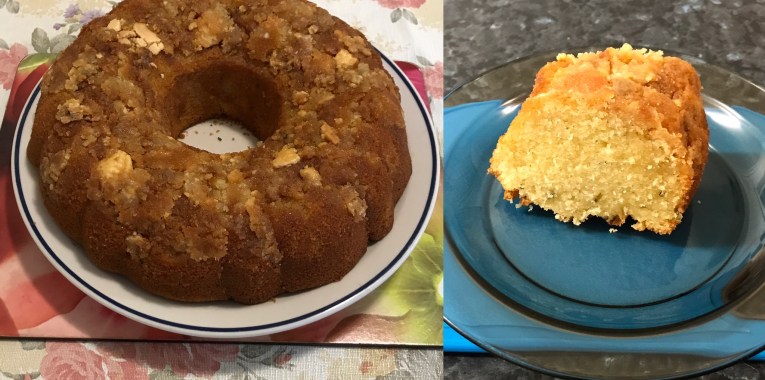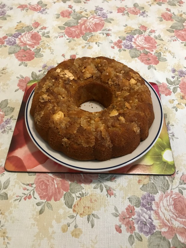 Bake for 40 minutes, skewer out clean; switch off oven. Leave in oven 30 minutes. Then cooling on rack further about 20 minutes. Removed from bunt tin onto plate. Serve warm or cold your choice.
