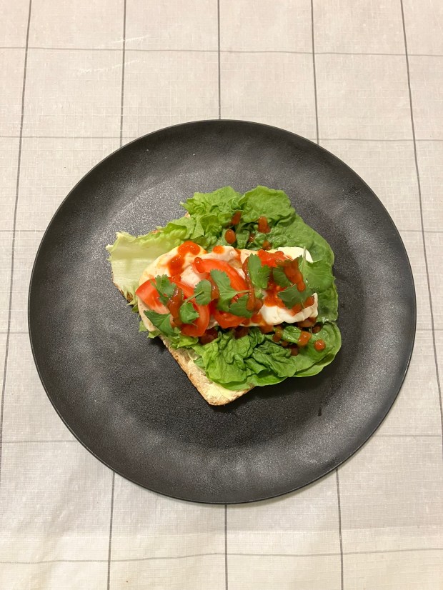 https://helenscchin.com/2023/10/24/fried-egg-tomato-chili-sauce-lettuce-on-buttered-bread/