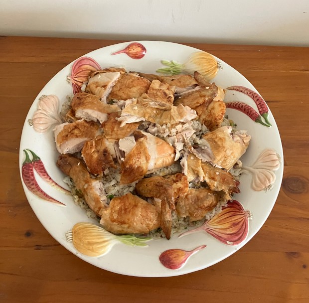 https://helenscchin.com/2024/12/24/roast-chicken-with-bacon-rice-stuffing/
