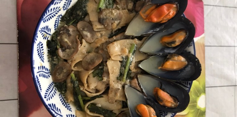 https://helenscchin.com/2024/01/08/kale-mushroom-pappardelle-with-mussel-in-white-wine-garlic-sauce/