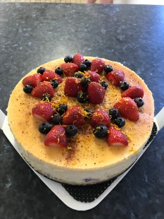 Note: Oven temperature may vary; you might need less time or more say 1 hour 30-40 minutes. You might want to turn off oven with door close 30 minutes and crack open a bit with wooden spoon in between door and leave cheesecake for a further 30 minutes as told by most recipes. I didn’t crack door open and just turn oven off and leave in for 1 hour. You might not need a lot of plain flour. Adjust the consistency of the batter. If too runny add more flour.