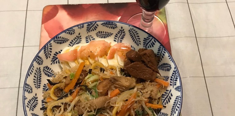 Serve with fried egg vermicelli and vegetables, along hard boiled egg and ginger pickled. Enjoy with a glass of red wine!!!