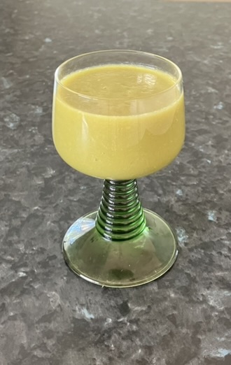 Bought asparagus and zucchini today. Added the last 3 pitted green olives. Here’s another green vegetable creation to stay healthy. This is trial and error experiment. I just make for a small glass to taste first.