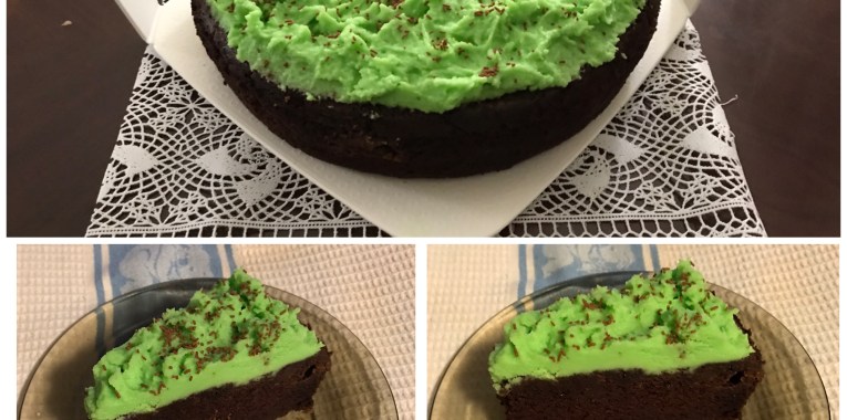 Just before serving cake about 1 hour, bring out ganache, beat it again with a tiny drop of green colour like cream until thickened, double in size. Spoon a big dollop of ganache in the middle and spread out all around the top of cake with a butter knife and make some design. Sprinkles chocolate sprinkles around the ganache. Cut and serve on its own or with ice cream or tea or coffee or dessert wine. Enjoy!!!!!