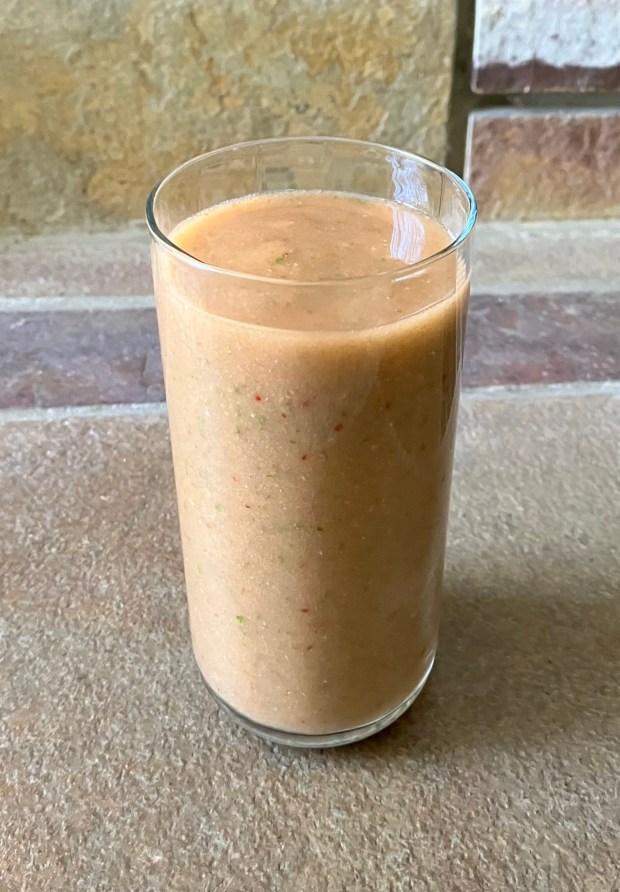 I have some thickened cream, so I’ve decided to make a smoothie, which is a nutrient-dense beverage made from pureed fruits, vegetables, and liquids that can serve as a meal replacement or snack, boosting vitamin, mineral, and fiber intake while improving gut health and sustaining energy levels.