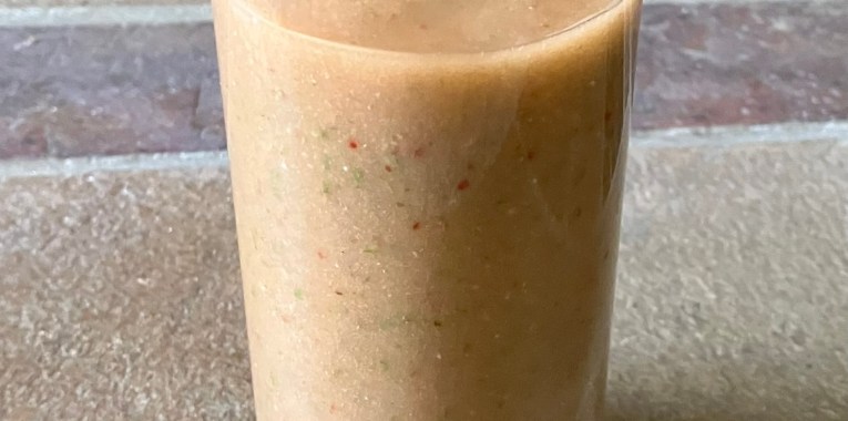 I have some thickened cream, so I’ve decided to make a smoothie, which is a nutrient-dense beverage made from pureed fruits, vegetables, and liquids that can serve as a meal replacement or snack, boosting vitamin, mineral, and fiber intake while improving gut health and sustaining energy levels.