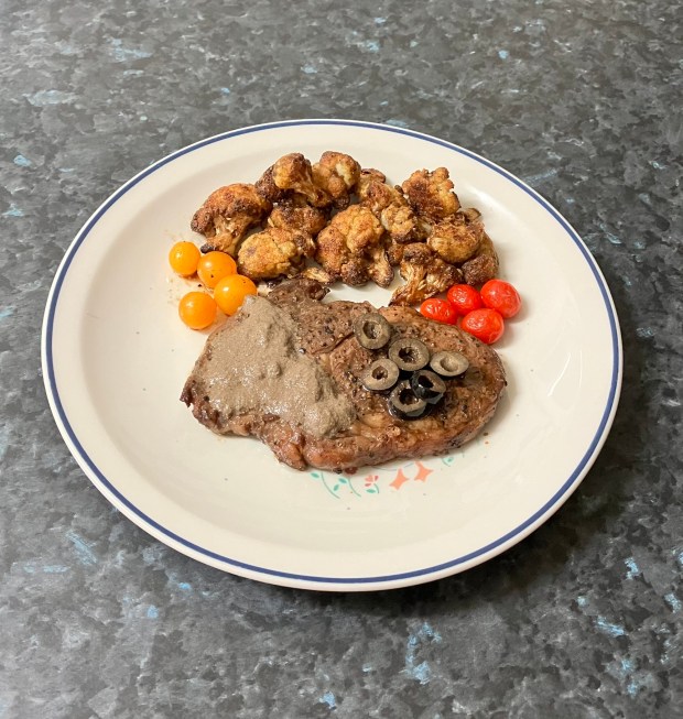 Rump steak prices went up, but I still bought it because I was craving it. I also found cauliflower and bought it since I haven’t had it in a while. Also, it is time to bring out the air fryer to do the work. Got some sliced mushrooms that doesn’t looks fresh, will make it into thick puree as sauce. Adding red medley cherry tomatoes with wrinkles and black olives slices for some colours and to finish off.
