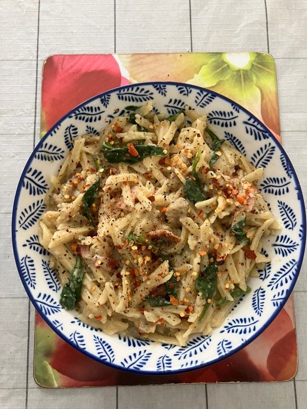 https://helenscchin.com/2023/04/12/warrigal-greens-chicken-stuffings-smoked-honey-bacon-pasta/