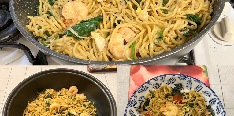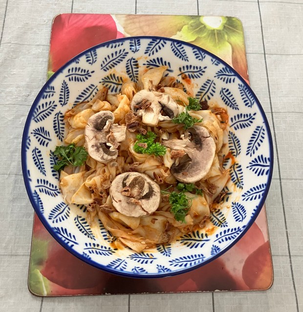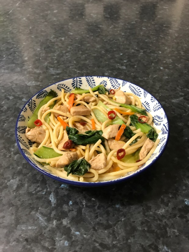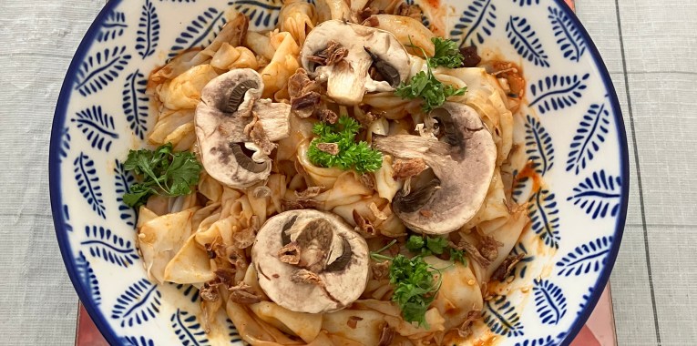 Char chee yoke cos lettuce spring onion shin rum yun noodles soup