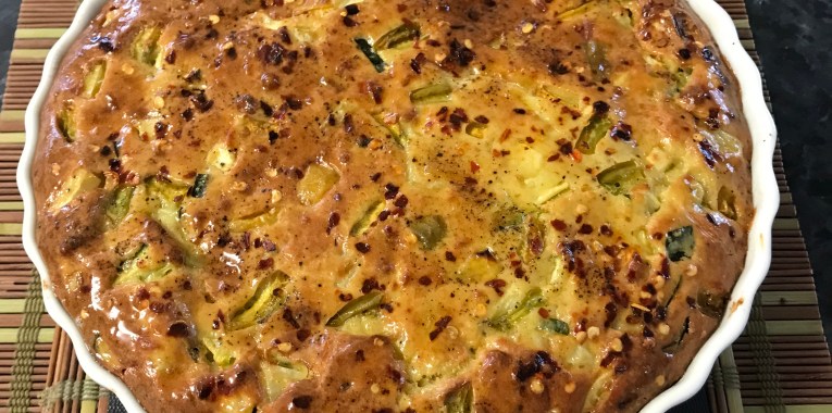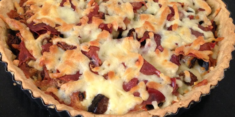Helen’s bacon and vegetables quiche with chilli flakes serve with salad
