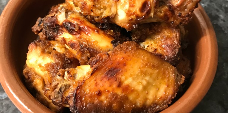 Helen’s Paella Valencia and marinated drumettes with bourbon sauce